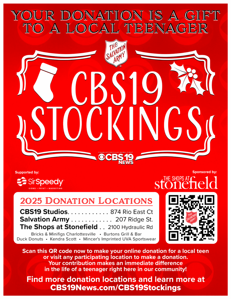 ***MONDAY, December 15, 6:30 p.m.–Program: Charlottesville Salvation Army Corps Officer, Major Donald Wilson, will speak to us about the youth programs offered by the Salvation Army year-round, including especially Camp Rappahannock, which once again this year is one of our club’s signature fund-raising priorities. At this time of year, we support the Angel Tree as well as ring the bell to fill the Salvation Army kettle. You might also consider supporting CBS19 Stockings which is an Angel Tree program especially designed to help teenage youth in need.