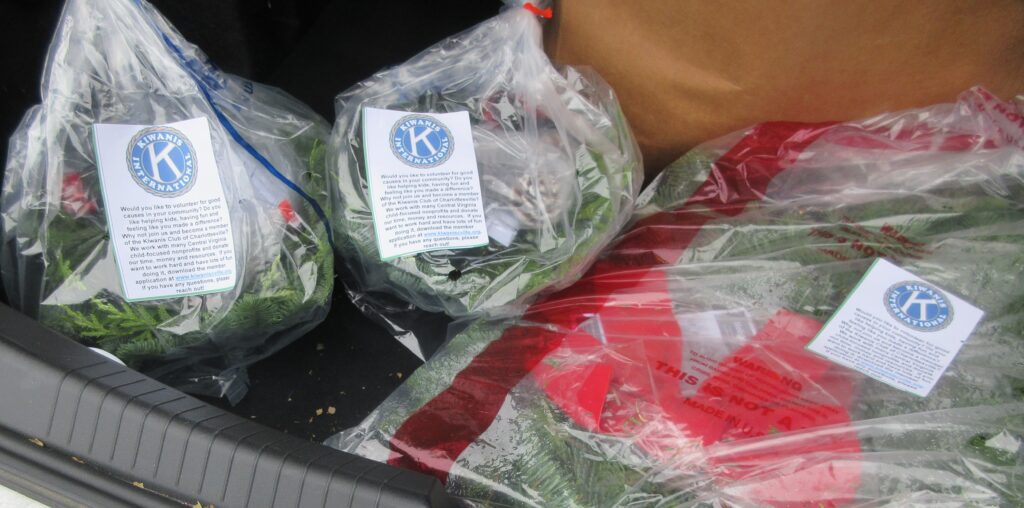 December 8, 2025 – For more than ninety years, the Kiwanis Club of Charlottesville raised money for its charitable programs by providing the community with the freshest and most beautiful Christmas trees and hand-made wreaths. In 2021, however, the club began a new holiday tradition. Unable to reliably source suitable trees, club members decided to take orders for gorgeous wreaths, garlands, centerpieces, and swags provided by Sherwood Forest Farms in Seattle, Washington. This company was the reliable source of greenery for the Albemarle High School Key Club’s annual holiday fundraiser for many years. Our order back in 2021 was placed by Past President Teresa Tyler (who had also been the AHS Key Club’s faculty adviser for many years.) This year marks the fifth year of the Holiday Greenery Fundraiser and, judging from the comments received by patrons not only in the Charlottesville area but from across the country, our greenery is the freshest and most beautiful that they have ever had. Thus, a Charlottesville Christmas holiday tradition continues to provide support for the various projects the club conducts for the children and youth in our community.